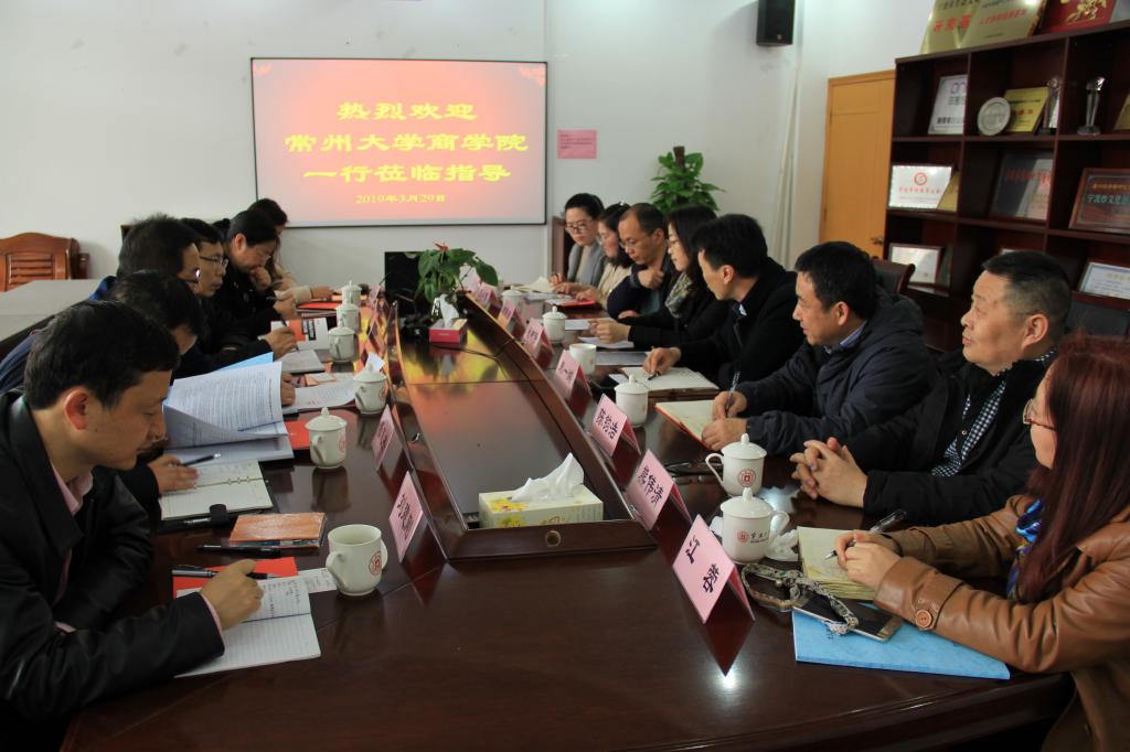 3月29日下午,常州大学商学院教学副院长姜国刚一行6人来访国产av影片 ,学院分管教学工作的协理副院长朱一鸿、 国贸系主任陈钧浩、信管系主任熊伟清、金融系主任刘慧宏、国际工商管理专业负责人钱树静、教务办主任江蓉、留学生教学秘书王小西、留学生辅导员王逸娇出席交流会。