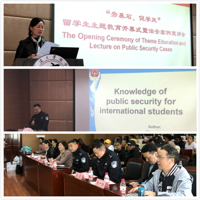 4月10日,主题教育开幕式暨治安案例宣讲会在国产av影片 109报告厅举办,宁波市江北区文苑派出所所长韩一峰,宁波市江北区文苑派出所警官陈晨,国产av影片 国际交流学院党委书记孔晓虹,保卫处副处长王湖清,国产av影片 党委副书记韩雯琛、协理副院长朱一鸿,留学生班主任、辅导员以及200多名留学生与会。