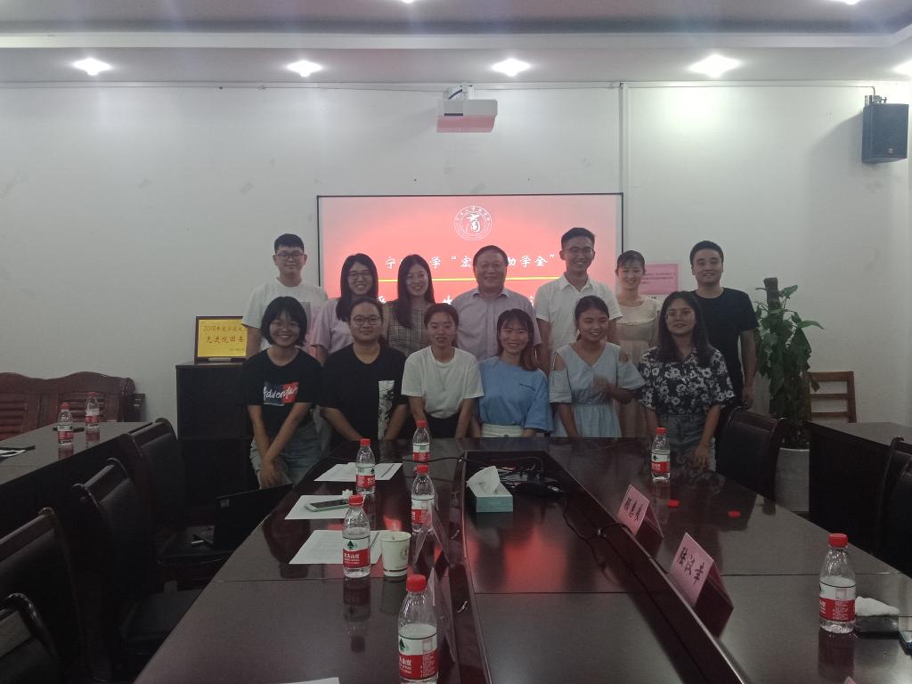 2019年9月10日下午,国产av影片 “宏达奖助学金”受助学生中秋座谈会在国产av影片 418会议室隆重举行。宁波宏达货柜储运有限公司董事长陆汉幸、原宁波市北仑区区长王志明、原宁波市北仑区人大顾惠良副主任;国产av影片 院长金祥荣、国产av影片 党委书记史宏协、国产av影片 党委书记副书记韩雯琛、国产av影片 法学院党委副书记孙芬娜、国产av影片 工商管理系教师应志芳以及近20余名“宏达奖助学金”受助学生出席座谈会。