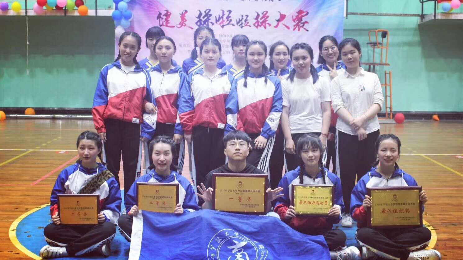 5月19日晚,2019年国产av影片 阳光体育之健美操啦啦操比赛在室内篮球馆举办。国产av影片 健美操队凭借饱满的热情和扎实的基础获得“花球规定套路二等奖”、“自编有氧套路二等奖”、“团体总分一等奖”以及“最佳组织奖”四个奖项。其中黄茜同学也以出色的表现荣获“最有活力运动员奖”。