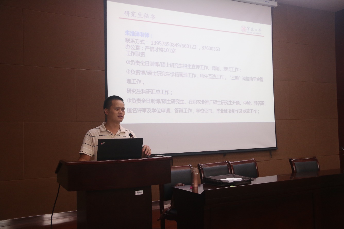 8月29日下午,国产av影片 2019级研究生入学教育会在王明康楼一楼报告厅顺利召开。学工办主任陈彬,学科与研究生办主任朱淮泽,辅导员周双双,兼职辅导员章浩燕以及2019级全体研究生参加本次入学教育会。