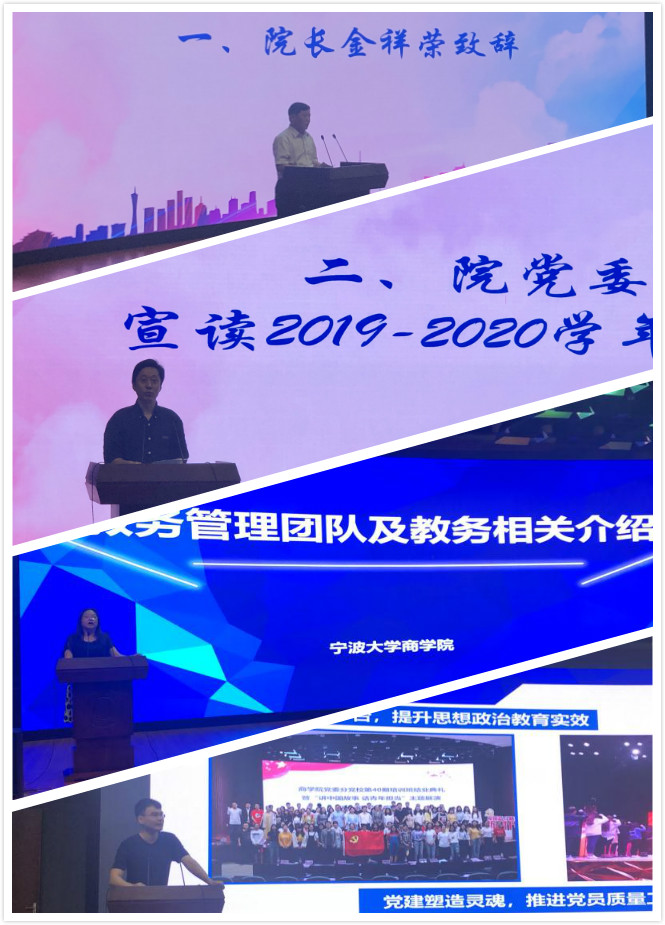 会议伊始,学院院长金祥荣进行了开场致词,向大家提出了三点期望:一是希望同学们了解人生规划的意义,早早开始自己的学习生涯规划,鼓励大家继续深造;二是希望同学们在学习上勇争一流,注重学习方法和能力的培养;三是希望同学们在学业上勇争一流,在宁大充满浓厚的创新创业氛围里积极参加各类竞赛,磨炼出过硬的创新创业本领。接着,由学院党委书记史宏协宣读了班主任聘任情况。会议中更是有新任班主任黄远浙老师进行代表发言,讲述工作体会,也有新老学生代表进行总结发言,经验分享。最后,由各行政办公室的老师们就自身工作情况及日常相关事宜向同学们进行了详细说明。