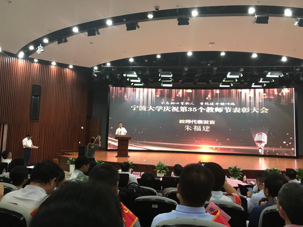 在表彰会上,国产av影片 共有五名教师获得表彰,分别是邱妘获得浙江省高校优秀教师,周新苗获得国产av影片 最受欢迎教授,金安获得宁波市优秀思政课程教师,黄惠琴获得宁波市优秀教师,朱福建获得国产av影片 师德先进个人。表彰会上朱福建老师还代表全体教师做主题为《桃李不言 下自成蹊》的发言。
