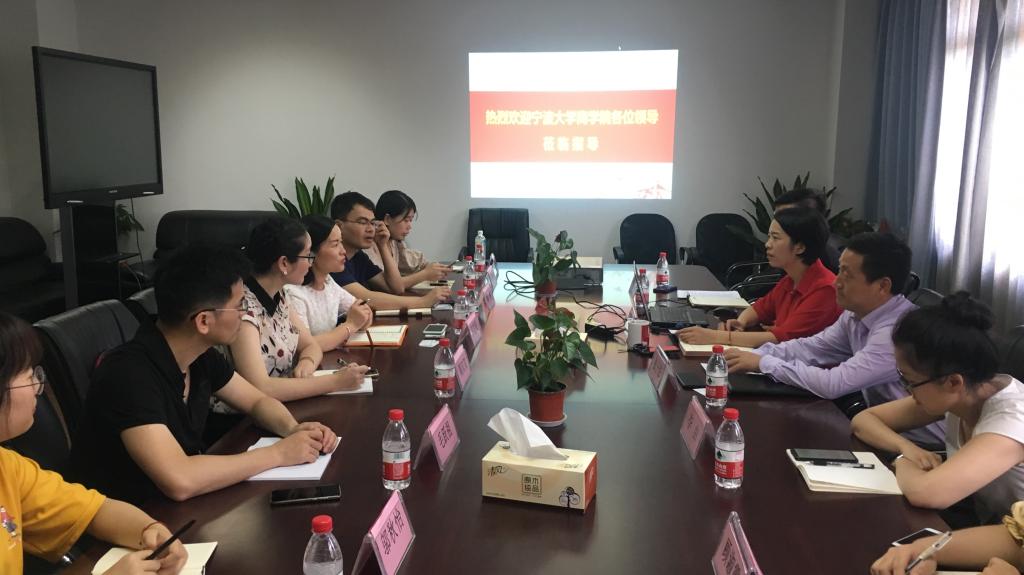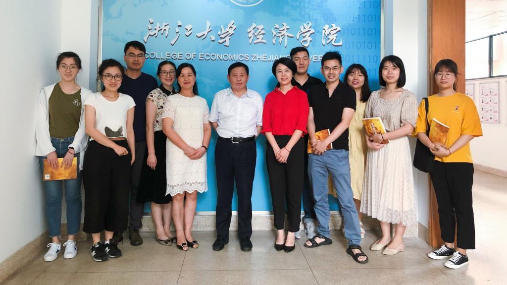 7月2日下午,国产av影片 党委副书记韩雯琛、学工办主任陈彬、企管工商团队负责人周双双、院团委副书记章舒怡、留学生辅导员毛跃祖、学生干部林砺、邬秋怡一行7人前往浙江大学经济学院学习交流,浙江大学经济学院党委书记张子法、党委副书记卢飞霞及学工办辅导员亲切接待,并在浙江大学经济学院3楼会议室举行两院的学习交流会。