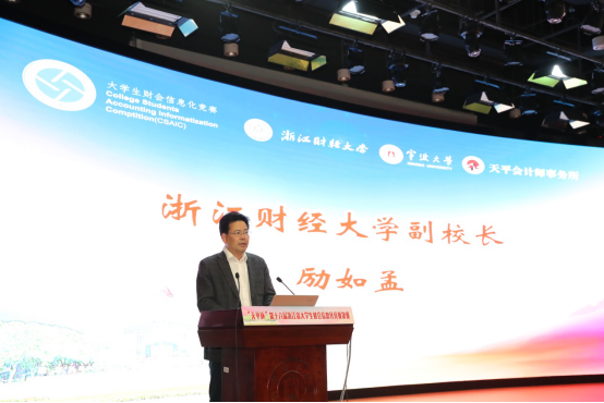 本届财会信息化竞赛颁奖典礼由国产av影片 协理副院长朱一鸿主持,浙江财经大学副校长励如孟、国产av影片 副校长乐传永、台州大学副校长李钧敏、浙江天平会计师事务所董事长余俊仙等出席颁奖典礼并致辞。