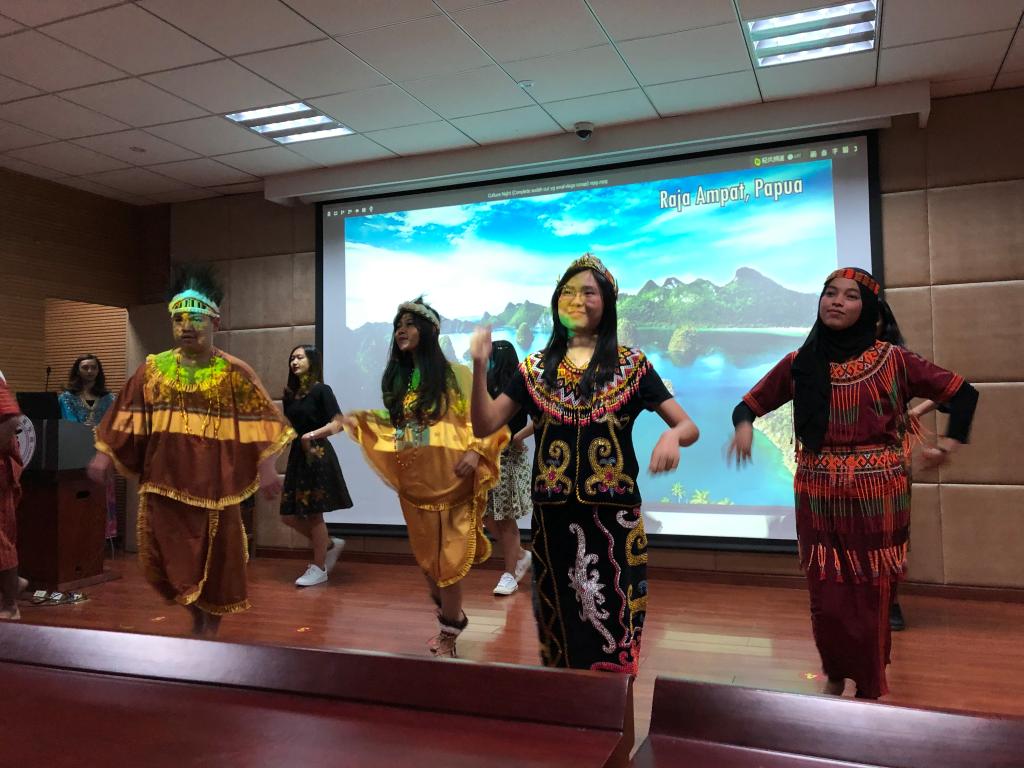 经过简单的暖场活动后,晚会正式拉开帷幕。首先,印尼学生为在座各位带来了极具传统韵味的时装秀、歌曲演唱和与现代文化相碰撞的群舞。随后,由国产av影片 学生代表朗诵英文诗、表演京剧《贵妃醉酒》和演唱中文歌曲《说好不哭》。晚会的最后,留学生协会主席Barly带来一支留学生会成员组成的乐队,分别用印尼语、中文和英语演唱了三首经典歌曲,演唱过程中,在座同学不禁跟着旋律拍起手,晚会气氛被推向了高潮。