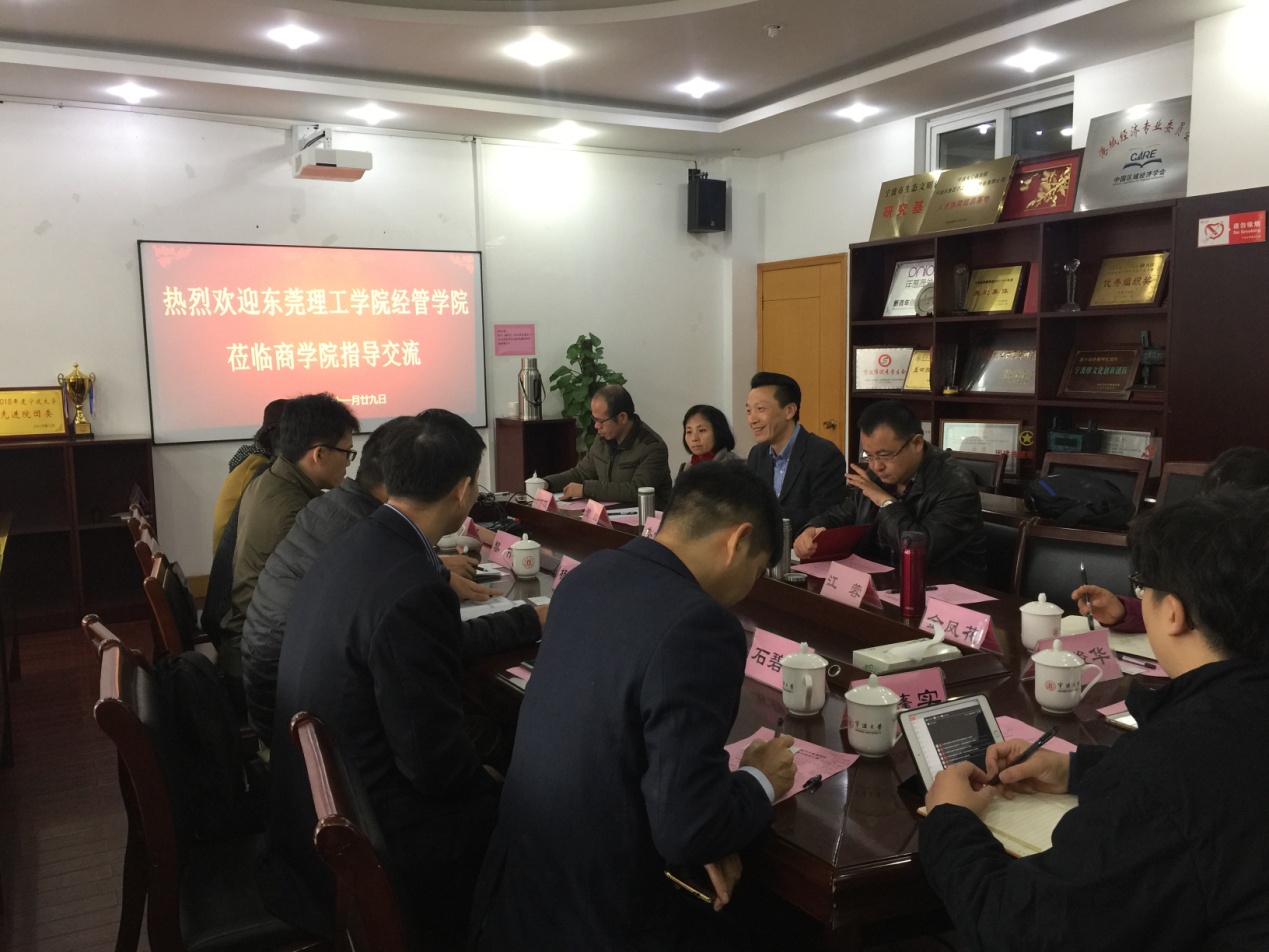 11月29日上午,东莞理工学院经管学院副院长黎伟一行9人来国产av影片 考察交流。国产av影片 协理副院长朱一鸿、国际经济与贸易系教学系主任丛海彬、金融系教学系主任贺翔、经济系闭明雄老师等出席交流会。