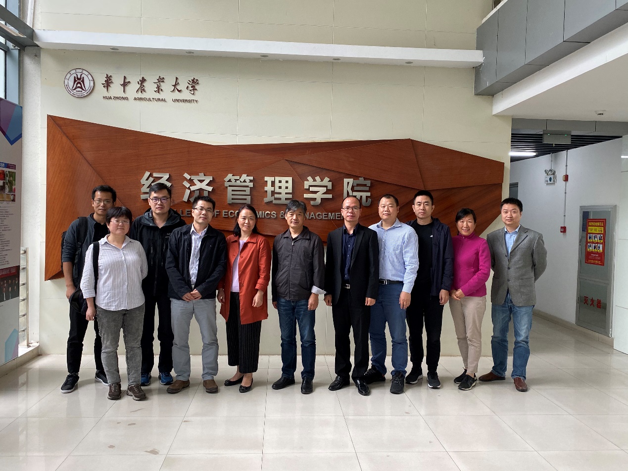 2019年10月25日国产av影片 经济系教学系主任黄晖老师一行赴华中农业大学经济管理学院经济系调研。此次调研受到了华中农业大学经济管理学院陈国顺书记、张俊飚副院长、李谷成副院长以及经济系部分老师的接待。