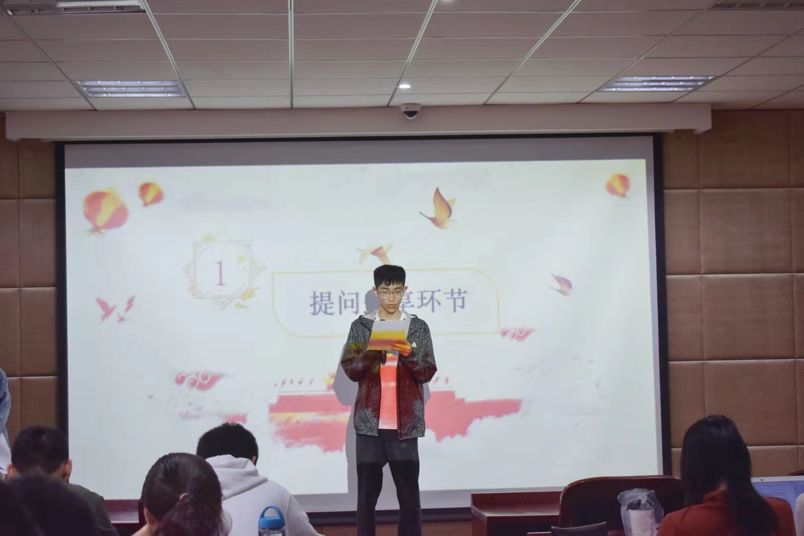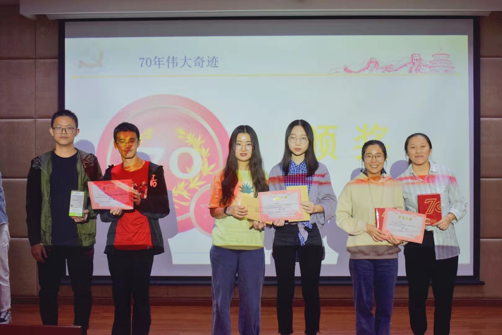 活动开始,主持人为大家介绍了本次活动的背景与目的,在响应建国七十周年的教育活动的同时,号召英文会计专业学生党员重视党性教育。本次活动分为分享提问、学习拓展、趣味知识竞赛三个环节。分享提问环节中,同学们积极地分享了他们在国庆期间关注到的身边党员先进助人事迹以及祖国家乡发生的变化,激起了大家内心的共鸣与感恩。学习拓展环节中为同学们播放了建国历史纪念短片,使大家感怀过去、了解历史。在趣味知识竞赛环节中,结合“应知应会”主题教育内容,通过趣味抢答、记忆填空等游戏让同学们在轻松活跃的气氛中学习了党的知识。