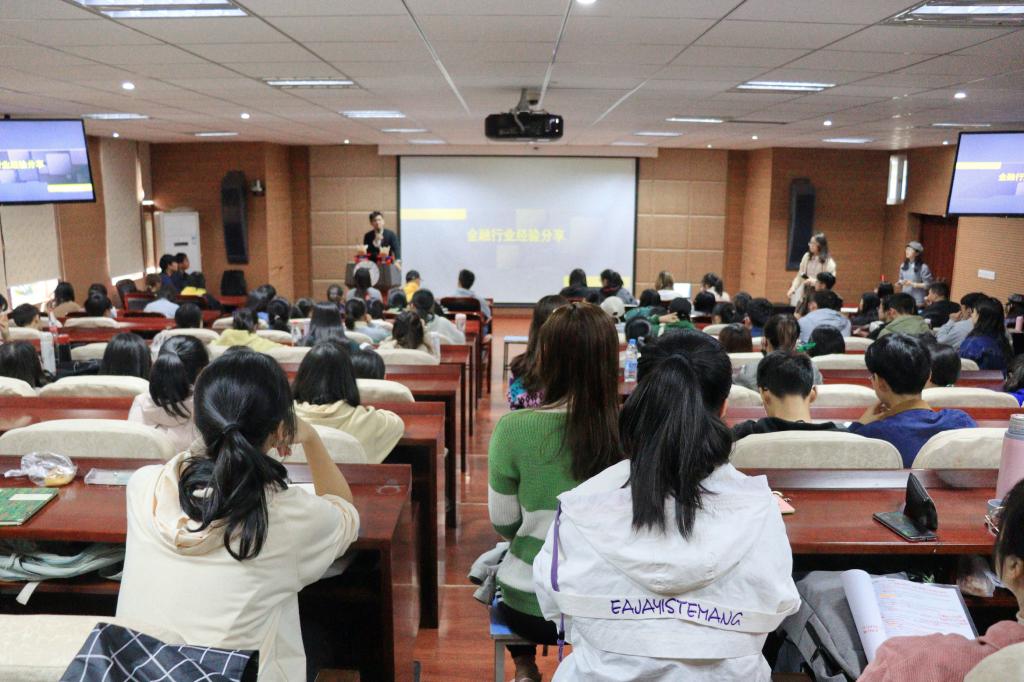 11月13日下午,国产av影片 “青年大讲堂”第九讲——金融行业经验分享会在学院109报告厅成功举办。本次分享会邀请到的嘉宾是CFA持证人、法国营销专业博士研究生万元以及优秀学长吴梦皓,国产av影片 各级学生踊跃报名参加。