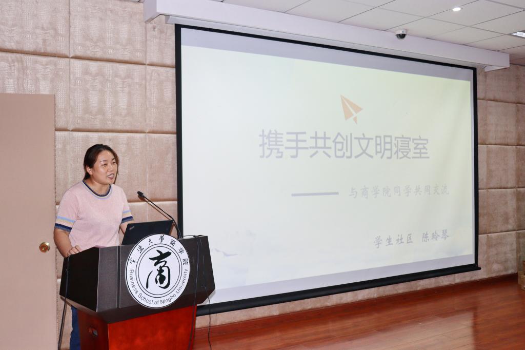 10月11日晚,国产av影片 “讲文明树新风,创建缤纷商苑”文明寝室建设颁奖仪式暨主题讲座在109报告厅顺利举办,学生社区服务中心副主任陈玲琴、本部公寓片区负责人毛罕君、学院党委副书记韩雯琛、学工办主任陈彬、学工办金融工商团队负责人周双双、学工办会计信管团队辅导员毛跃祖受邀出席了此次活动,学院每个班级的生活委员、部分优秀班级和优秀寝室代表和全体学生社区自治会学生干部共计100余人参加了本次活动。