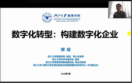 5月24日上午9:00,由国产av影片 MBA教育中心主办 “国产av影片 名人、名嘴、名企”暨第三十四期MBA论坛成功举行。本次论坛很荣幸地邀请到了浙江大学管理学院郭斌教授作为主讲嘉宾,分享主题是《数字化转型:构建数字化企业》。由于疫情原因,本次论坛采有钉钉群直播方式,2019级MBA学员、历届MBA校友及部分师生共150余人参与此次论坛。