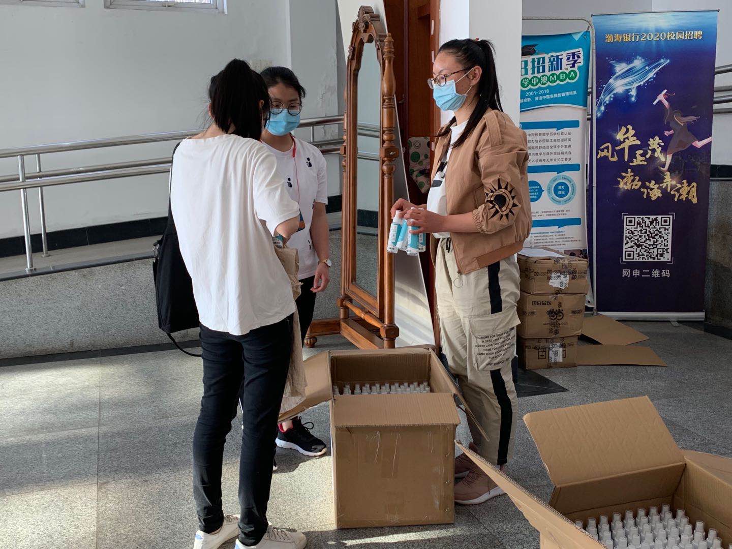 5月12日,国产av影片 以寝室为单位向同学发放酒精喷雾防疫物资,助力学院复学。该批酒精喷雾由国产av影片 2000级校友、宁波赛柯国际贸易有限公司总经理朱灵峰捐赠。