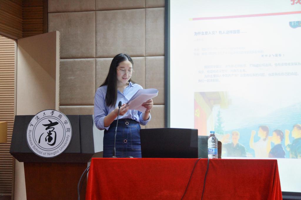 本次党课首先向2020级工商管理(中加学分互认)和2020级工商管理(第二学位)的44名本科新生提出了“如何过好自己的大学生活?”“如何让自己的人生更有价值?”两个问题。接着,周双双从入党的重要意义,从国家和社会需要几个层面解答了同学们心中“我为什么要入党?”的疑惑,并还详细地介绍了入党的申请流程和申请要求,为想要入党的同学做好思想引领和政策解读。最后,周双双向同学们提出了入党的条件,不仅要在思想上向组织靠拢,更应该用行动说话,学好专业知识同时,更应该为同学全心全意服务,吃苦在前,全方位提升自己。