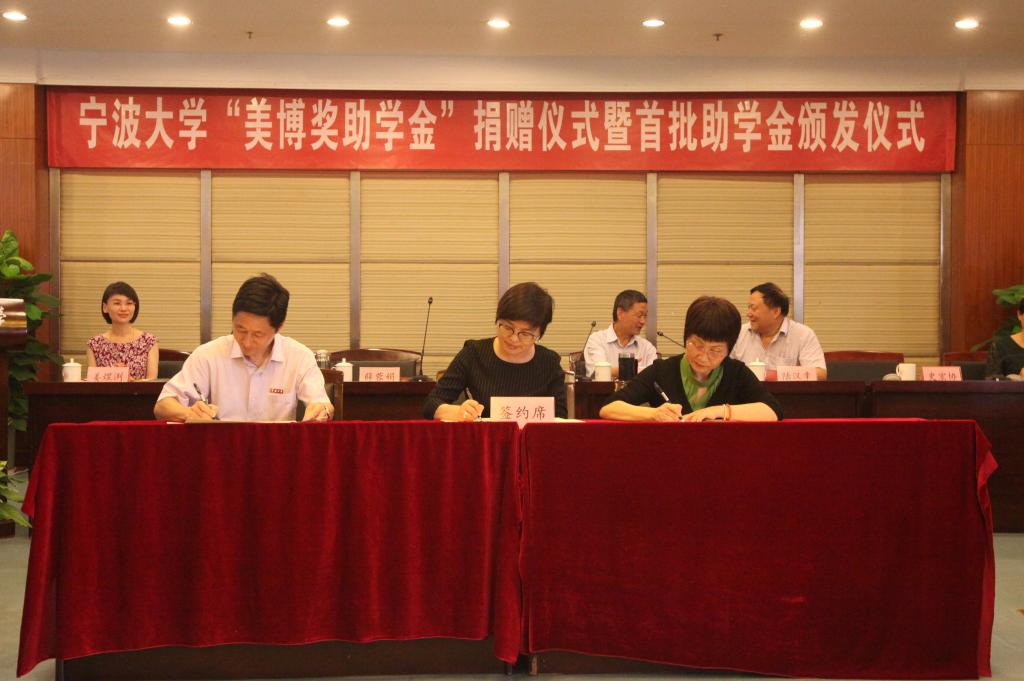 6月18日,国产av影片 “美博奖助学金”捐赠仪式暨首批助学金颁发仪式在安中大楼碧华厅举行。校党委副书记冯杰、宁波美博进出口有限公司董事长梅飞珍、宁波市北仑区慈善总会副会长薛蓉娟、宁波宏达货柜储运有限公司董事长陆汉幸、发展与联络处副处长 姜煜洌、学生发展与服务处副处长蔡小飞、国产av影片 党委书记史宏协以及国产av影片 、法学院受助学生参加仪式。仪式由国产av影片 党委副书记韩雯琛主持。