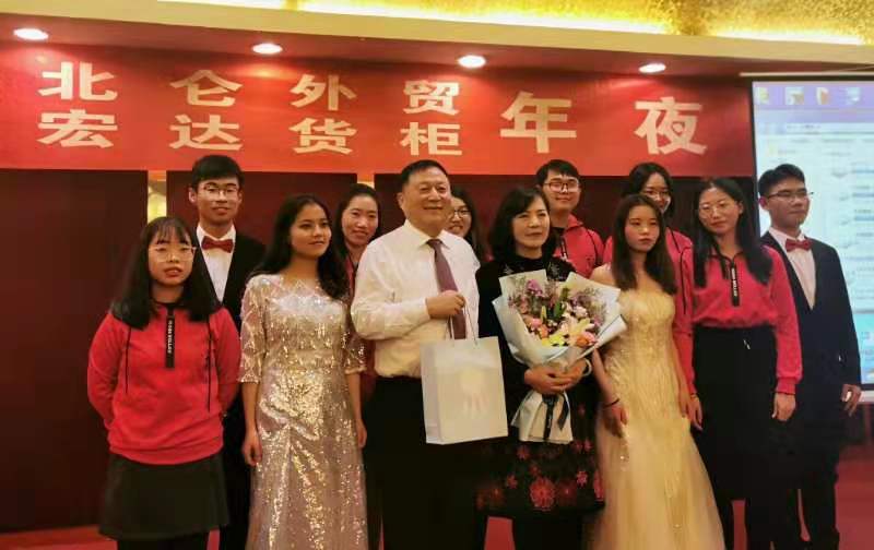 1月3日晚,受宏达货运储柜有限公司陆汉幸董事长诚挚邀请,国产av影片 校友联络处处长万彭军,国产av影片 党委书记史宏协、党委副书记韩雯琛、学工办董璐、工商系应志方及宏达奖助学金受助学生代表一行人赴宁波北仑参加宏达货运储柜有限公司参加感恩活动。自2015年,陆汉幸在国产av影片 设立宏达奖助学金,与国产av影片 师生结下了深厚的友谊,宁大师生代表连续五年与陆汉幸校友在北仑欢聚一堂,喜迎新年。