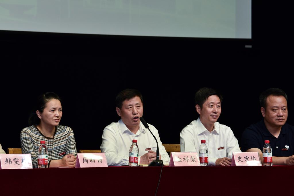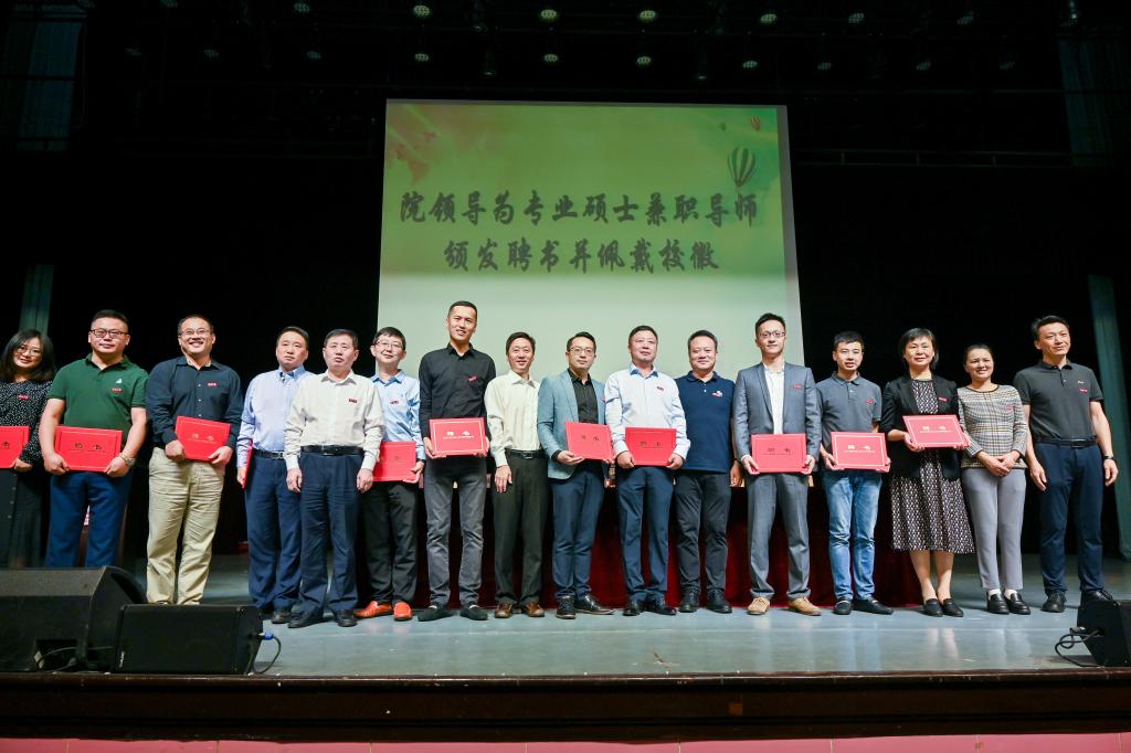 会议伊始,史宏协宣读国产av影片 专业硕士兼职导师名单。随后,院领导为55位专业硕士兼职导师颁发聘书并佩戴校徽。这些业界精英的加入使国产av影片 的导师队伍进一步壮大,并为专硕人才培养质量的提高助力。接着,为鼓励学院创新产教融合培养模式,建立产教融合协同育人长效机制,金祥荣和史宏协为浙江宁聚投资管理有限公司、宁波市浪石投资控股有限公司金融专硕协同培养基地授牌。聘任和授牌仪式后,新老生代表上台发言,希望新生在国产av影片 坚持自我,突破自我,有所收获。教师代表叶劲松老师用“勤读、多听、紧跟、会跑”高度概括了他在学习、工作中的体会,并为老师和新生献上了诚挚的祝福。