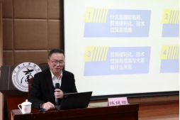 活动第二阶段是企业(高管)进校园活动,由国贸系主任杨丹萍老师主持,宁波跨境贸易便利化协会会长陈健骅应邀作了题为“新国际格局下贸易便利化、技术性贸易措施的作用与演变”的学术报告。陈会长紧紧围绕“国际新格局”、 “贸易便利化”以及“技术性贸易措施”这三大主题展开。首先在国际格局上,陈会长认为当今世界百年未有的大变局既是挑战,也是逐鹿世界的大好机会,未来中国要继续坚定地推进全球化,打造内外双循环的新格局;在贸易便利化和技术性贸易措施方面,陈会长认为技术性贸易措施工作有系统性、专业性、穿透性三大特点,而贸易便利化的工作则是将技术性贸易措施不断简化、透明化与标准化。同时预测新国际格局下,贸易便利化、技术性贸易措施作用和影响将会越来越大。最后,陈会长结合实际,就与国产av影片 的进一步合作提出了思路和想法。