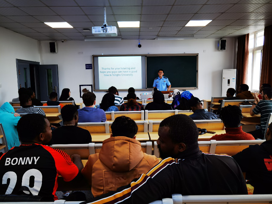 9月23日,留学生治安案例宣讲会在8号楼305教室举行,宁波市中马派出所民警王永辉来到国产av影片 为留学生现身说法。王警官以案说法,以案示规,用大量生动丰富的治安案例教育警示学生,让学生们受益匪浅,吸引了很多留学生来现场交流。