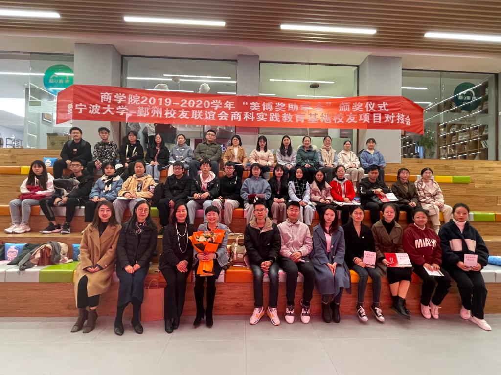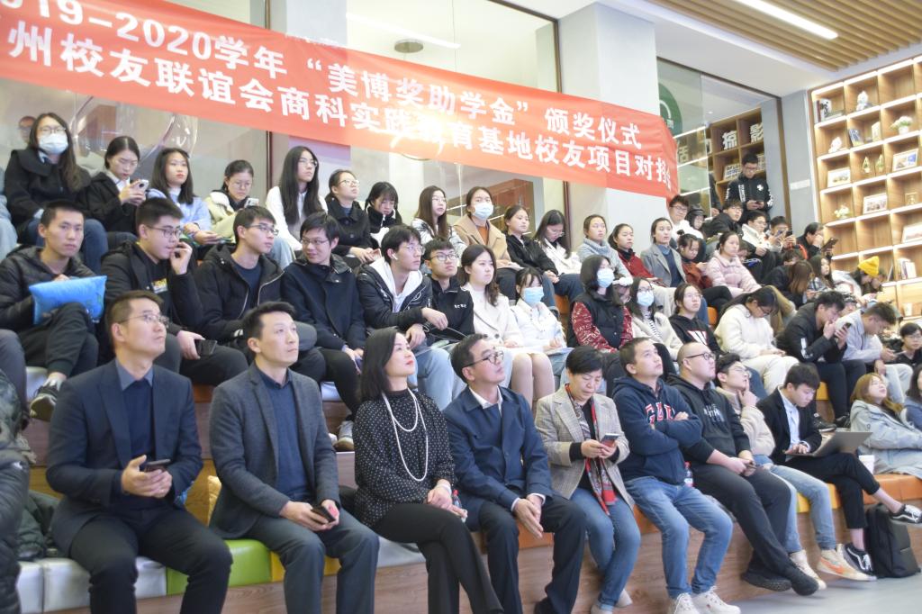 2020年12月9日下午,国产av影片 在云创1986青年小镇路演大厅顺利举行2019-2020学年“美博奖助学金”颁奖仪式暨国产av影片 -鄞州校友联谊会商科实践教育基地校友项目对接会。本次大会由学院学生董振宇主持。