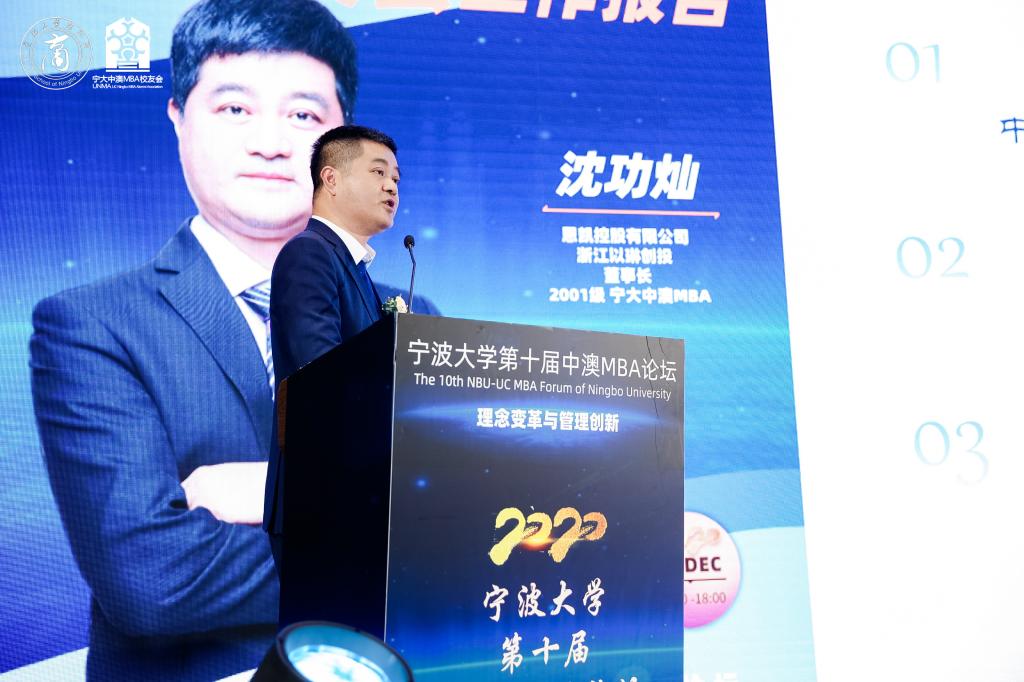 随后,宁大中澳MBA会长沈功灿先生简要总结回顾了第二届中澳MBA校友理事会的工作——创办三大品牌活动,设计制作中澳MBA吉祥物“吉澳”,以及疫情期间发动校友积极募捐等,并对第三届中澳MBA校友理事会的工作提出了展望——在开展现有的校友会活动的基础上,注重活动品质与可持续性;打造有影响力的精英俱乐部;联合知名国产av影片 宁波校友会共同发起成立“长三角(宁波)全球国产av影片 校友内循环共同体”;通过海外校友会设立中澳MBA校友会海外分支机构;搭建为校友创新创业赋能的生态平台和路演空间。