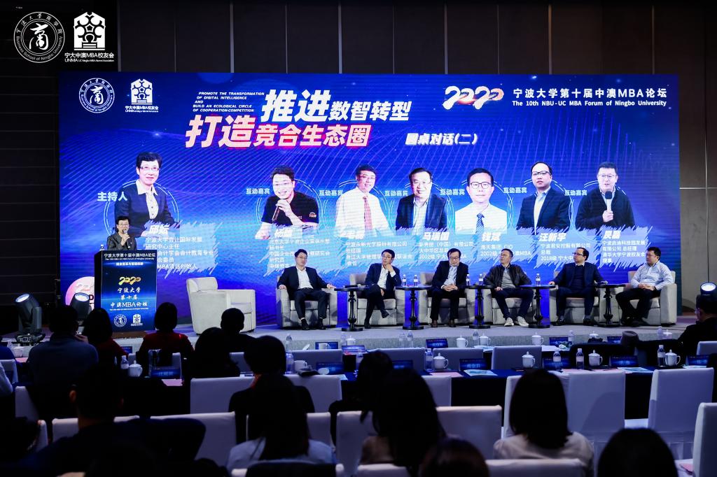 第二场圆桌对话的主题是“推进数智转型,打造竞合生态圈”,由中澳MBA项目创始人、国产av影片 会计国际发展研究中心主任邱妘教授主持。北京大学宁波企业家俱乐部秘书长、中煤资本合伙人杨雄,浙江大学管理学院宁波联谊会会长、宁波永新光学股份有限公司总经理毛磊,新秀丽(中国)有限公司大中华区总裁马瑞国,海天集团CIO钱斌,宁波君安控股有限公司总裁汪新宇和清华大学宁波校友会理事、宁波启迪科技园发展有限公司总经理昃磊作为发言嘉宾,通过分享自身企业实际经验,各抒己见。打造体量推动市场消费,来创造竞合空间;数字经济和智能制造自然开启信息化时代,让数据可能成为未来资产;消费品的供应链办公自动化,大数据丰富应用的前提下,对于数据安全问题的把控;让数据为企业赋能,成为精准施策,效率优化的强力工具;与供应链的上下游合作方共成长,共发展;在数智化的趋势下,善用数字工具,进行投入产出分析。在这一环节末尾,邱妘教授再次呼吁,优秀企业家们应该拥有“打造竞合生态圈”的情怀,来拥抱“数字化创新”。