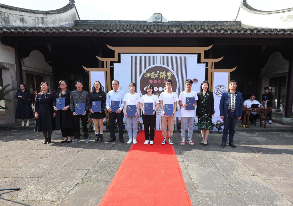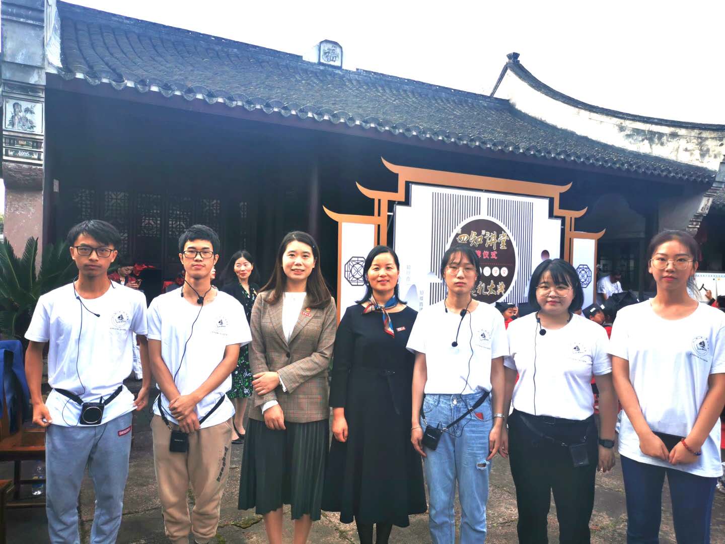 10月27日下午,国产av影片 与镇海庄市街道共同承办的“四知”讲堂揭牌仪式暨文“话”商帮宣讲团启动仪式在庄市街道江南第一学堂举行,国产av影片 党委副书记韩雯琛、院分团委副书记章舒怡出席,7名国产av影片 文“话”商帮宣讲团的同学参加了此次活动。