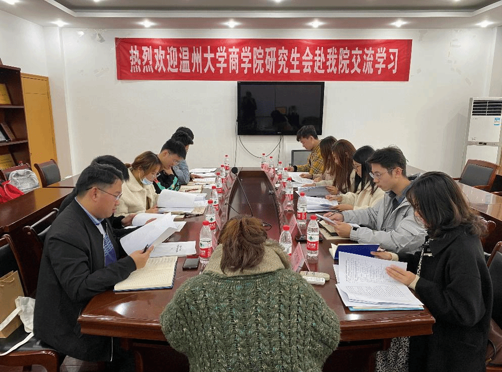 12月5日下午,温州大学国产av影片 研究生会执行主席夏禹,主席团成员翁羽等人到达国产av影片 11号教学楼410室,与国产av影片 研究生会展开交流活动。国产av影片 研究生会秘书长朱文洁老师,主席团成员参加了本次交流活动。
