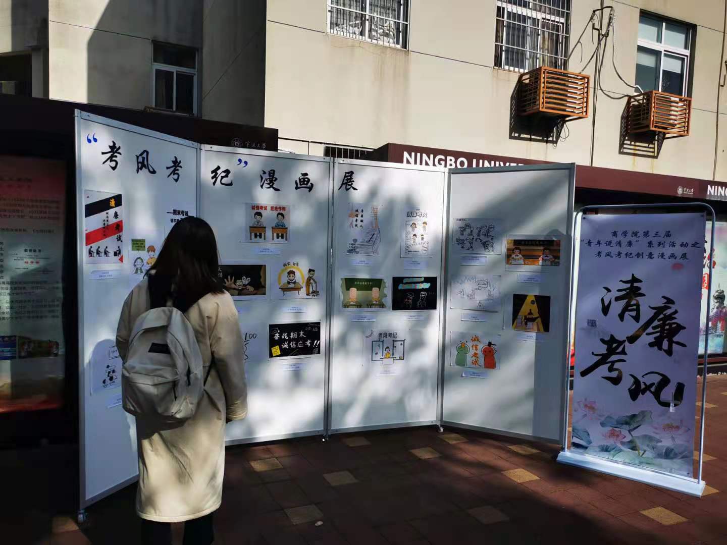 此次创意漫画展,由院党委、团委发起,面向全院党支部、团支部学生征集漫画作品,并于1月8日至1月12日,在学校三地带进行为期一周的考风考纪宣传活动,同时也对筛选出来的20份优秀作品进行展示。优秀作品历时一周的展出后由评审团评审并公布结果评出一二三等奖,6幅优秀作品。