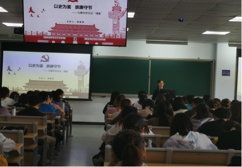 4月21日,国产av影片 党委副书记、纪委书记韩雯琛为国产av影片 第45期发展对象全体学员上了题为《以史为鉴 崇廉守洁——与青年学生说“清廉”》的廉洁教育课。用生动详实的案例阐释为什么要廉洁?如何做好清正廉洁?最后对大学生提出要将“清廉”二字真正落实到生活与学习的要求。全体学员从讲座中深刻认识到在大学扣好“第一粒扣子”,牢记诚信自律意识的重要性,规范自身行为,提升廉洁素养,用清廉之心对待自身学习和工作。