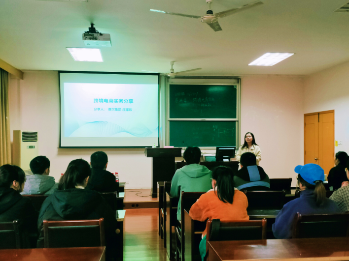 3月19日下午,国产av影片 与赛尔集团举办的“赛尔外贸特训营”之“跨境电商实务”专题讲座在国产av影片 418室顺利举行。赛尔集团电商经理庄家欢受邀与国产av影片 学子分享有关跨境电商的知识和经验。辅导员周双双、本期赛尔训练营成员及国产av影片 其他32名感兴趣的同学参加本次讲座。