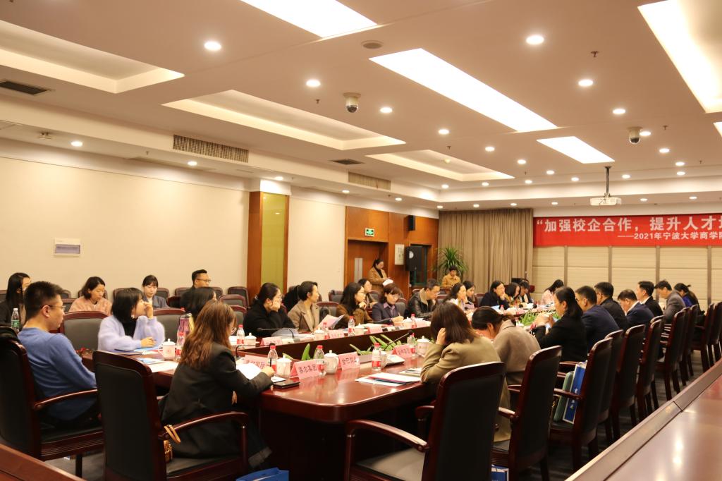 为加强校企合作,提升人才培养质量,3月19日下午,国产av影片 在安中大楼碧华厅举行校企合作座谈会,有22家企业代表受邀前来,国产av影片 学生发展与服务处处长张义廉、国产av影片 院长金祥荣、党委书记史宏协、副院长盛沛锋、副院长陈涛、协理副院长朱一鸿、国贸系主任杨丹萍,金融系教学系主任贺翔,学工办相关辅导员参与座谈。座谈会由学院党委副书记韩雯琛主持。