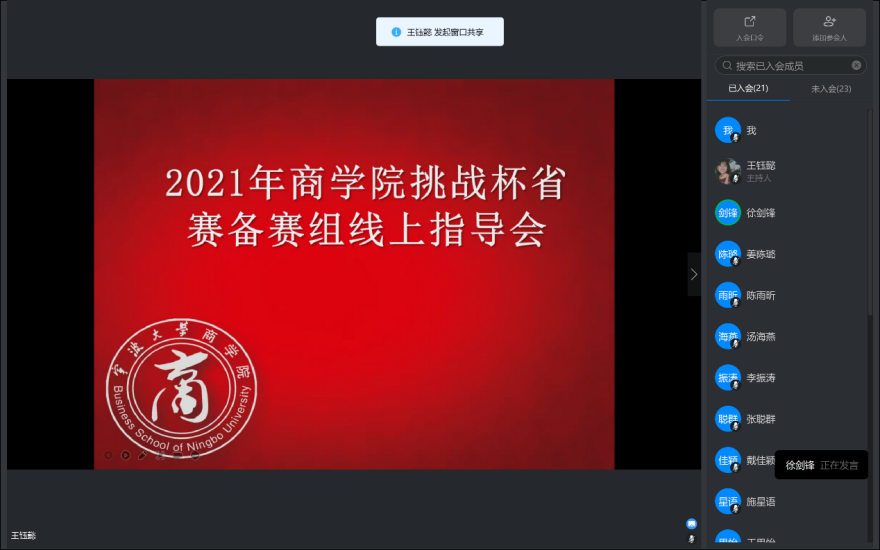 2月22日晚,国产av影片 邀请浙江省社会科学院区域经济研究所所长徐剑锋老师,线上指导学院2021年挑战杯省赛备赛项目,国产av影片 备赛组成员及指导老师参加。