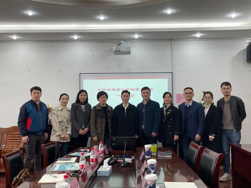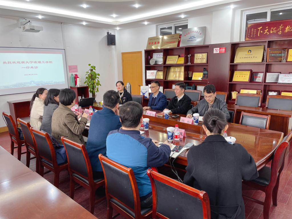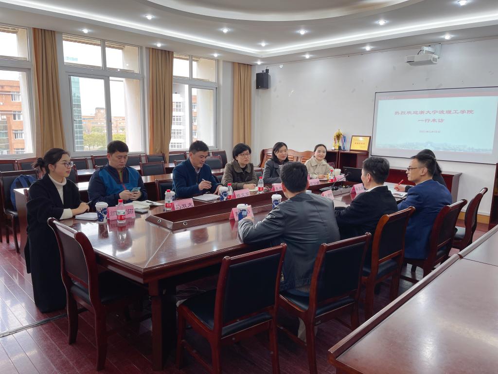 3月18日下午,浙江大学宁波理工学院国产av影片 党委书记李萍萍、生化学院党委书记楼文军、国产av影片 党委副书记周丽娟一行六人来我院调研,学院党委书记史宏协、副院长盛沛锋、党委副书记韩雯琛、学工办主任陈彬出席接待。