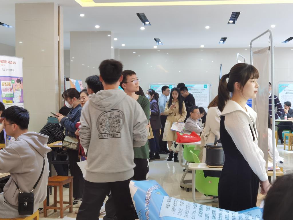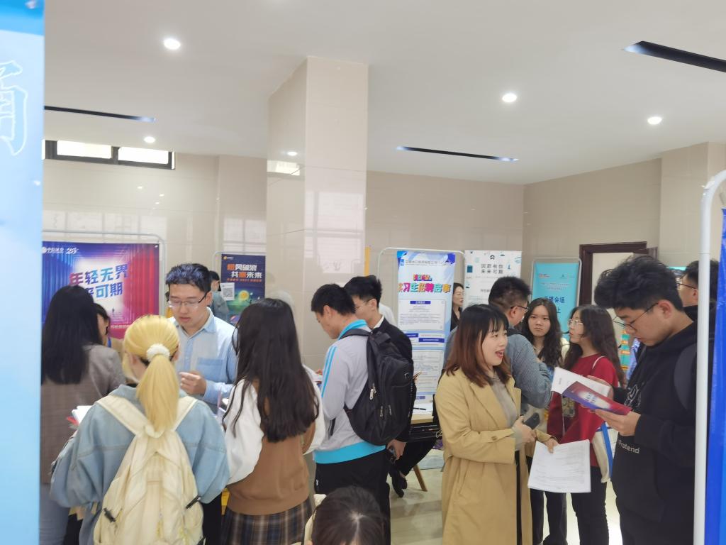 招聘会现场人声鼎沸,来往的学生络绎不绝,整个招聘会井然有序。用人单位布置好自己的会场,HR主动邀请,热情地介绍本公司的详细招聘信息,并为毕业生们详细解答疑难。毕业生们也满怀信心手持自己精心准备好的自荐书和简历,满脸自信地穿梭于人流之中,积极与招聘人员交流,主动了解用人单位的情况,积极寻求合适自己的工作岗位。双向的、面对面的交流是互相了解的最好方式。这不仅让用人单位更直接地了解到毕业生的需求和具体情况,还让同学们更清楚地知道各个企业和岗位的基本要求及实际岗位情况,并对比自身从而更好地选择了更适合自己的岗位。