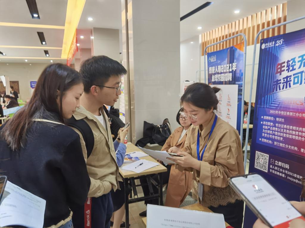 为满足企业春季校招的需求并给国产av影片 广大优秀学生提供就业、实习的渠道,国产av影片 在4月28日下午于魏绍相楼组织举行了国产av影片 经济管理类国产av影片 专场招聘会。本次招聘会共组织了六十余家用人单位,其中包括宁波赛尔集团、平安养老保险股份有限公司以及宁波赛龙进出口有限公司等等,招聘岗位数量上百个,涉及财务、管理、金融等等专业,吸引了大量2021届优秀毕业生以及部分大三学生参与。