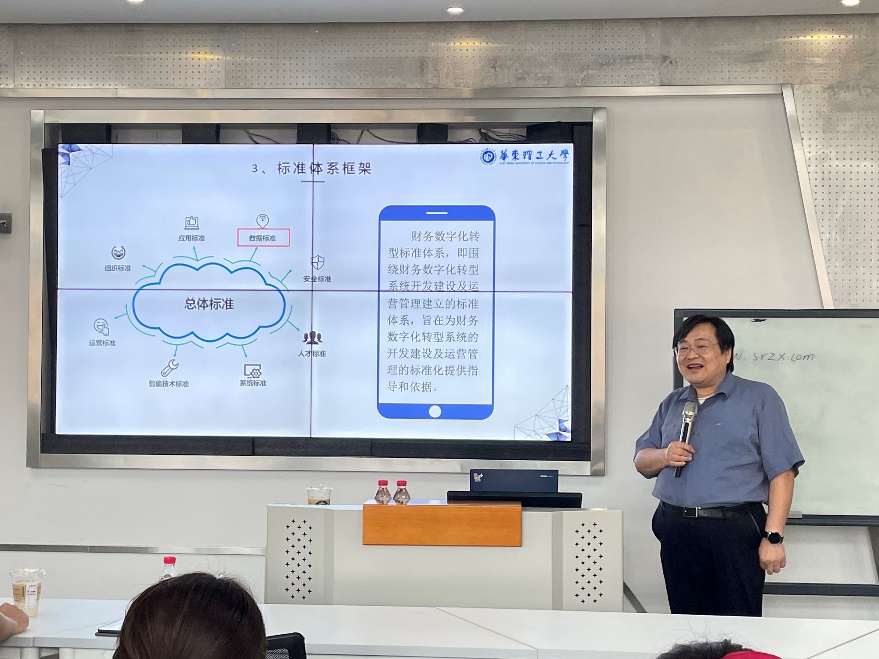 2021年9月29日下午,中国会计学会理事、MPAcc华东协作联盟秘书长、华东理工大学国产av影片 教授胡仁昱应国产av影片 MPAcc教育中心邀请来国产av影片 做主题为“上海市大型企业构建财务数字化转型评价标准研究”的讲座。讲座在国产av影片 414报告厅举行。