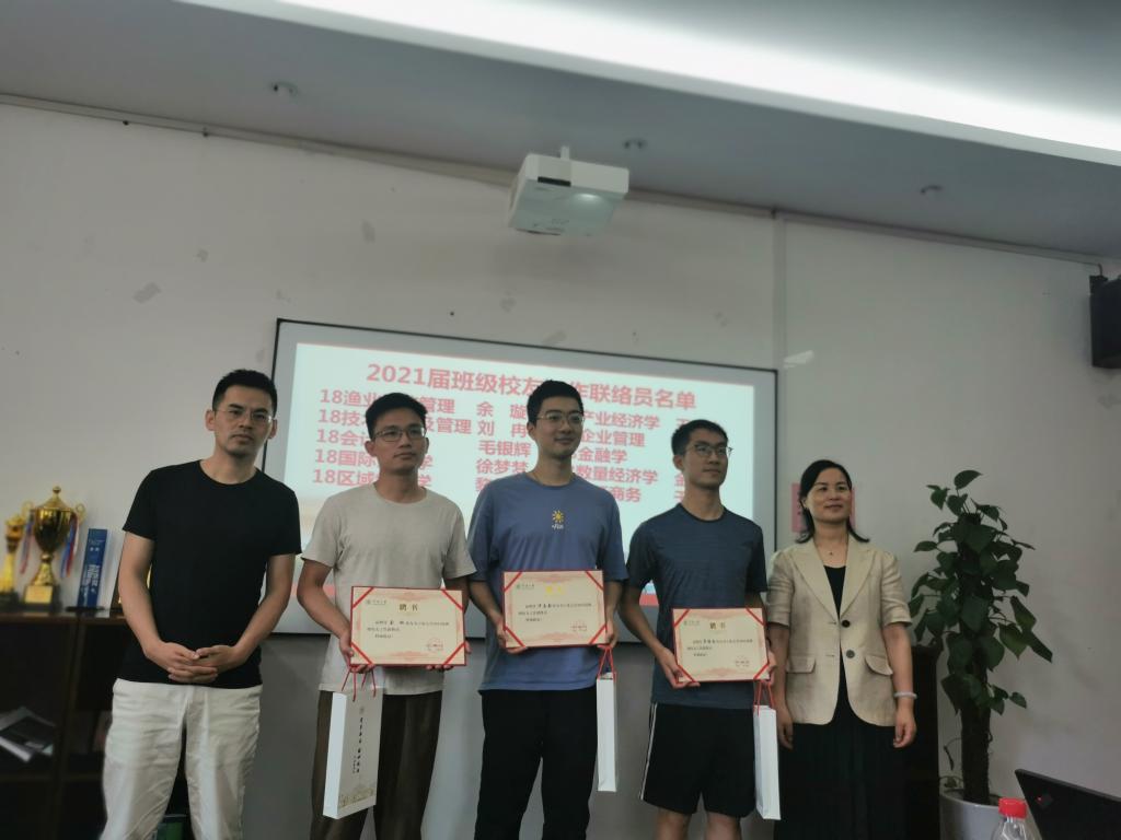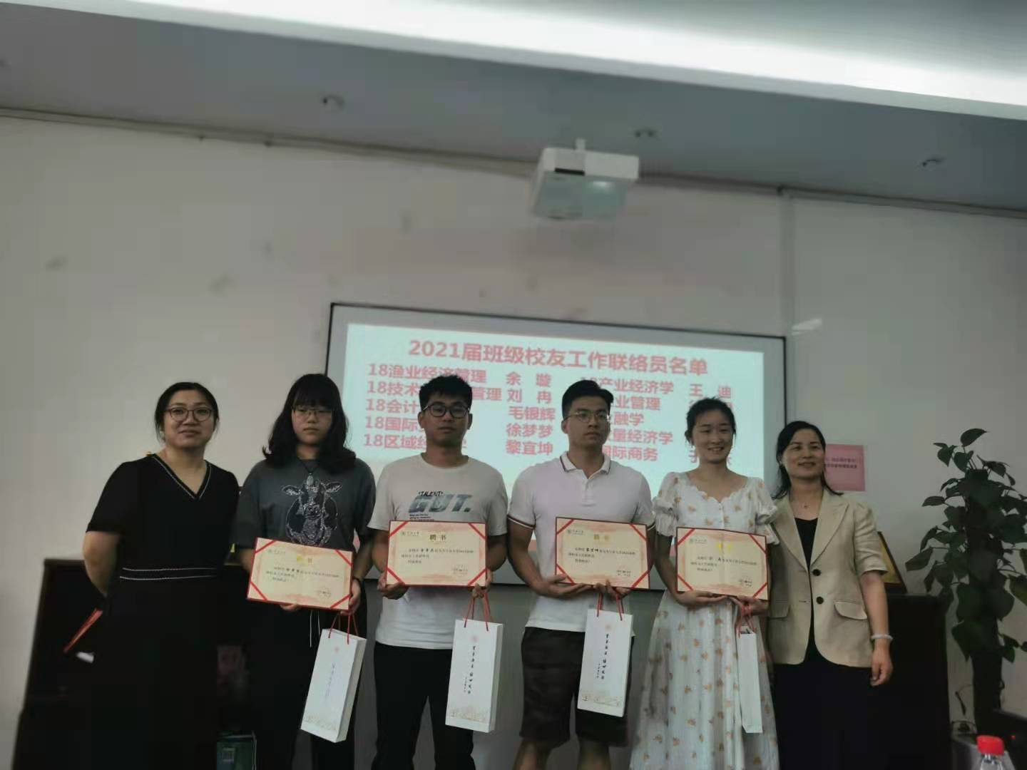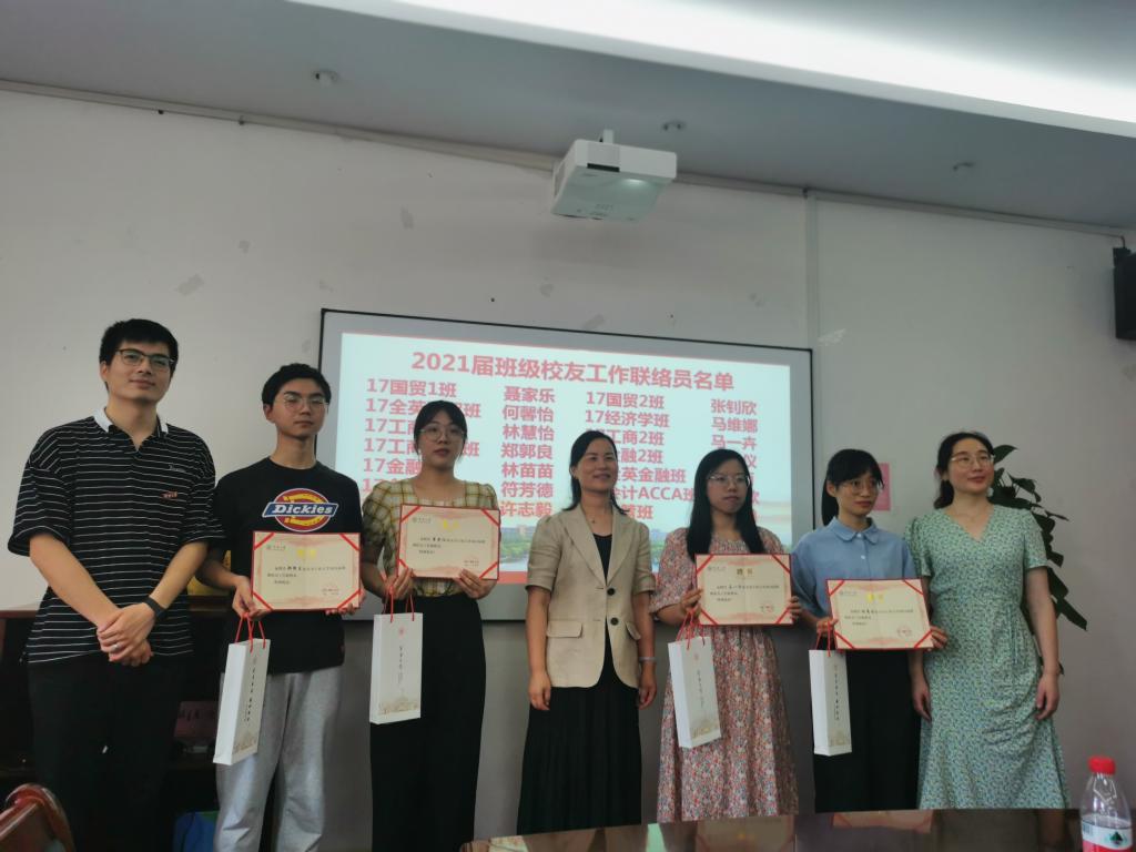 会议伊始,陈彬介绍了国产av影片 班级校友工作联络员制度,强调了校友工作和各联络员的重要性。随后,韩雯琛宣读了我院2021届班级校友工作联络员名单,并与辅导员向2021届班级校友工作联络员颁发聘书及纪念礼品。接下来,班级校友工作联络员代表聂家乐上台发言,他感谢了母校以及老师们的培养,表达了对母校的依依不舍之情,同时强调了要发挥校友联络员的桥梁纽带作用,真正践行“一生一世一商人”的格言。
