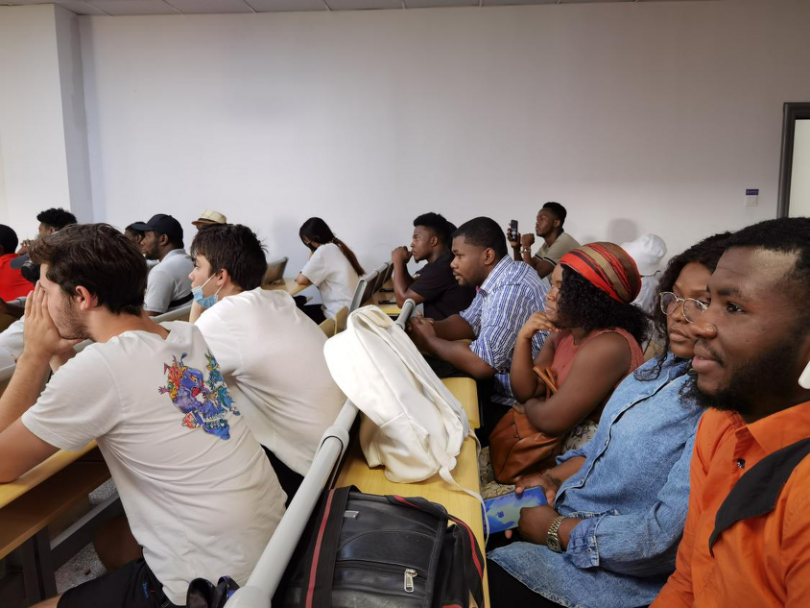9月29日下午,第五届“夯基石、促学风”留学生主题教育活动暨毒品安全知识讲座在8号楼204教室举行。宁波市庄市派出所民警杨延飞来到国产av影片 为留学生现身普及公共和校园安全知识。讲座上,王警官结合社会安全事件种类、特性和危害,用大量生动丰富的案例教育告诫留学生要学会保护自己和朋友,留学生们受益匪浅。