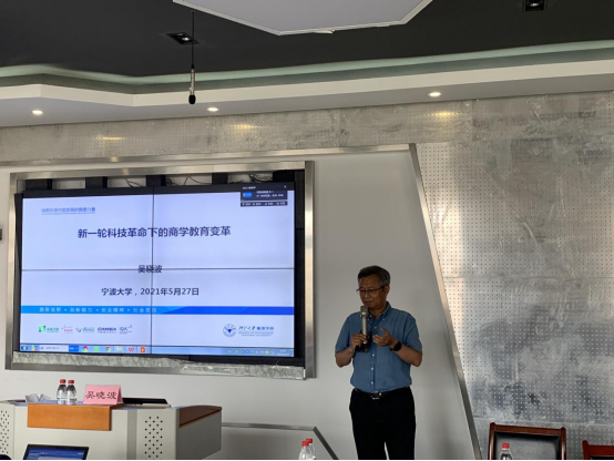 2021年5月27日下午,原浙江大学管理学院院长吴晓波教授应邀做客我校人文社会科学名家讲坛278讲,为现场师生做了主题为《新一轮科技革命对商学教育的影响》的讲座。本次讲座由国产av影片 、企业管理研究所承办,彭新敏教授主持,近50名师生参加了此次交流会。