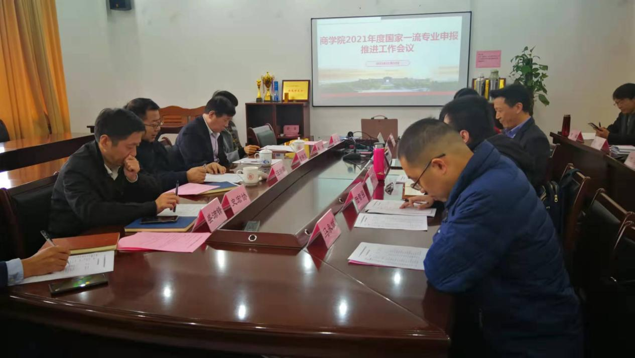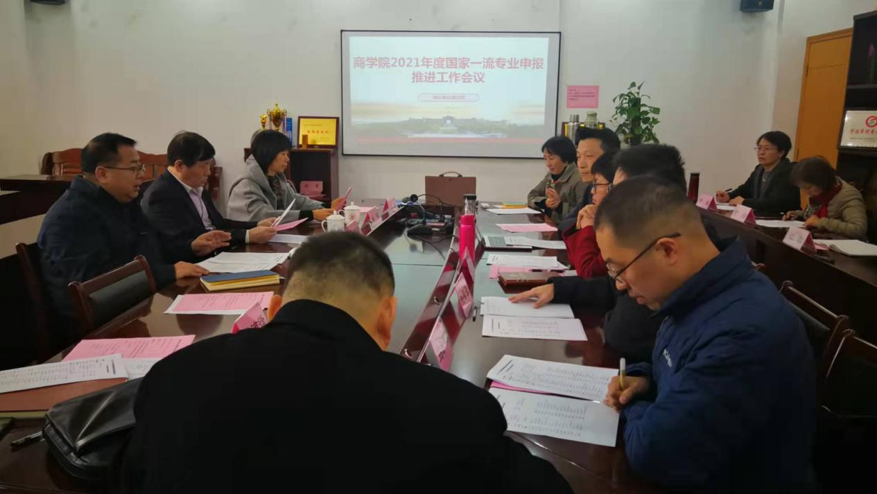 会上,经济系主任徐群芳和会计系主任陆智强分别就本专业建设和申报工作情况进行汇报,国贸系主任杨丹萍分享了国际经济与贸易国家一流专业建设点申报经验。