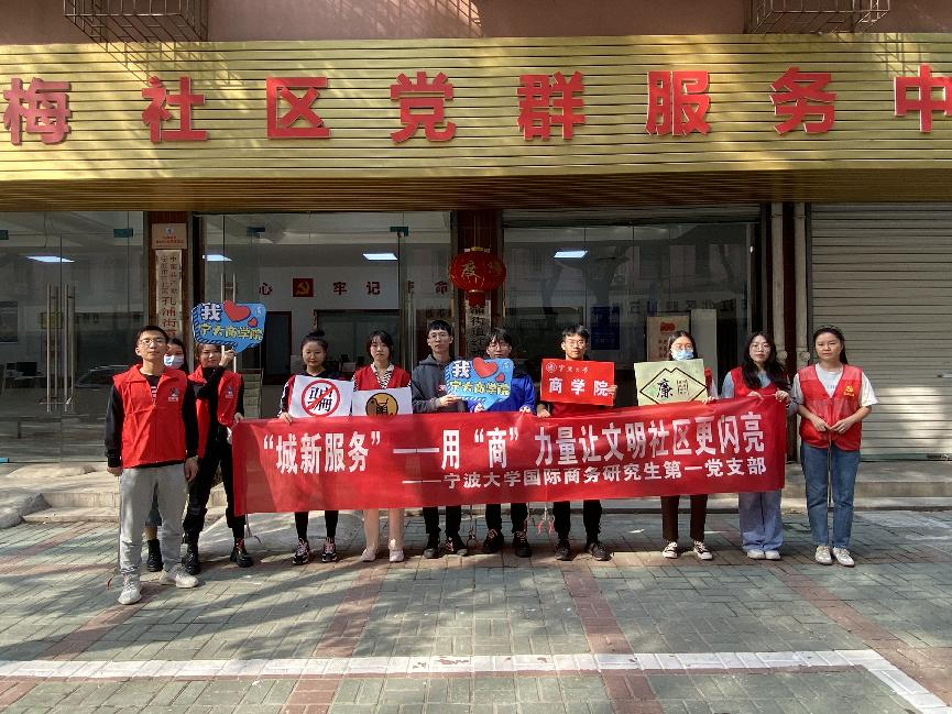为鼓励学生党员积极加入文明城市创建工作,以实际行动弘扬志愿者服务精神,提升城市“文明指数”,为宁波市创建文明城市贡献力量。10月26日,国产av影片 国际商务专业研究生第一党支部在孔浦社区开展了“城新服务”——用“商”力量让文明社区更闪亮活动。