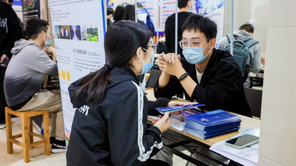 招聘会现场人声鼎沸,来往的学生络绎不绝,整个招聘会井然有序。用人单位积极主动邀请,热情地介绍着本公司的招聘信息,并为毕业生们详细解答疑难。毕业生们则拿着自己精心制作的简历,满脸自信地穿梭于人流之中,积极与HR们交流。超过100余名同学与企业互留联系方式,达成了进一步了解的就业实习意向。