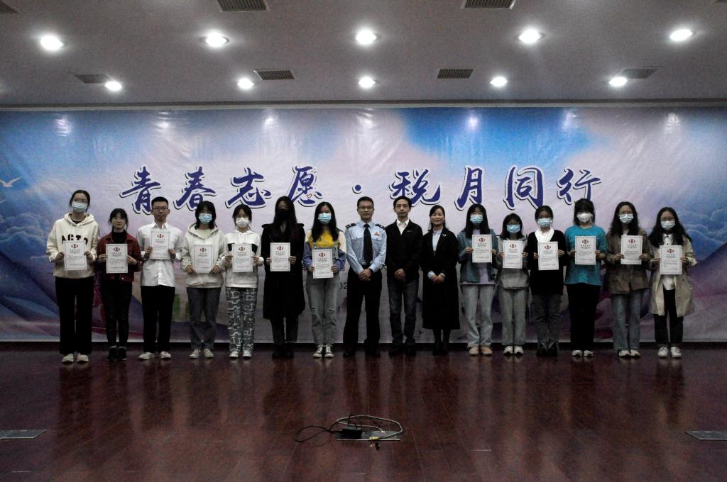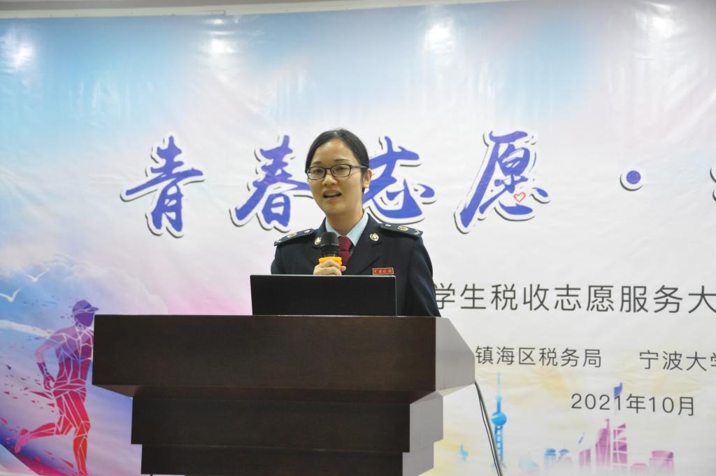 仪式上,税务局和商院教师共同为上一批的23名税收志愿服务大队的优秀志愿者代表进行颁奖表彰,优秀志愿者姚宇轩同学代表全体志愿者发言。镇海区税务局税收风险管理局杨晶晶和镇海区税务局骆驼税务局严晶晶分别以:“薄誉厚德,无私为民——新时代税务人的三个一精神”和“纵有‘税’月可回首,策马扬鞭正当时”为主题为同学们进行微型党课展示。通过微型党课,同学们了解到了税务人一丝不苟、一往无前以及一心一意为人民服务的决心,更加坚定了任重道远虽艰辛,但仍需策马扬鞭逐梦为党的决心。随后,蛟川税务所一级行政执法员艾巧芳为同学们进行了志愿服务培训与动员。