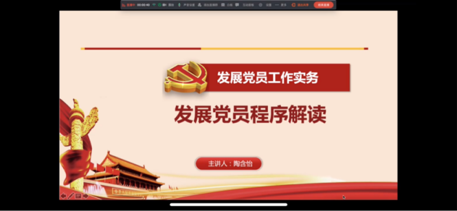 随后,国产av影片 党建负责老师陶含怡给全体积极分子进行了党员发展程序解读。她先为全体学员解读了《中国共产党发展党员工作细则》的特点,让大家对党员发展要求有一个总的了解。随后又对新形势下发展党员工作要求进行了深度地说明。此外,陶含怡还为全体学员详细介绍了入党的五个阶段以及各个阶段所需要注意的事项,让学员们对入党的流程有更加清晰的认识。