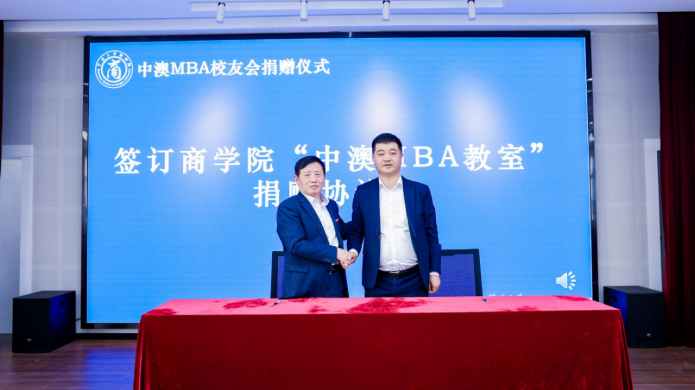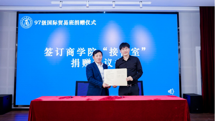 随后,余姚国产av影片 校友会、中澳MBA校友会、97级国际贸易班校友们纷纷给国产av影片 送上“生日贺礼”,与国产av影片 依次签订“马蹄形教室”、“中澳MBA教室”、“接待室”的捐赠协议书,余姚国产av影片 校友会秘书长黄文杰、中澳MBA校友会会长沈功灿、97级国际贸易班校友张国君依次发言,表达对母校、对学院的感恩之情,感谢学院的悉心培育,校友们将秉持王阳明的万化根源总在心的精神,继续凝心聚力,回馈母校,为母校添砖加瓦。随后,分别由童晓晖、唐绍祥、陶菁老师与校友代表们一起依次为受赠教室揭牌,院领导们为校友们赠送答谢礼品。