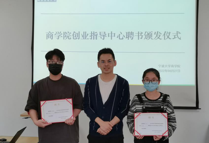 4月27日下午,国产av影片 创业指导中心聘书颁发仪式在曹光彪商科楼320顺利举行。中心指导老师毛跃祖、秘书长钟冬冬以及创业指导中心全体成员出席了本次仪式。