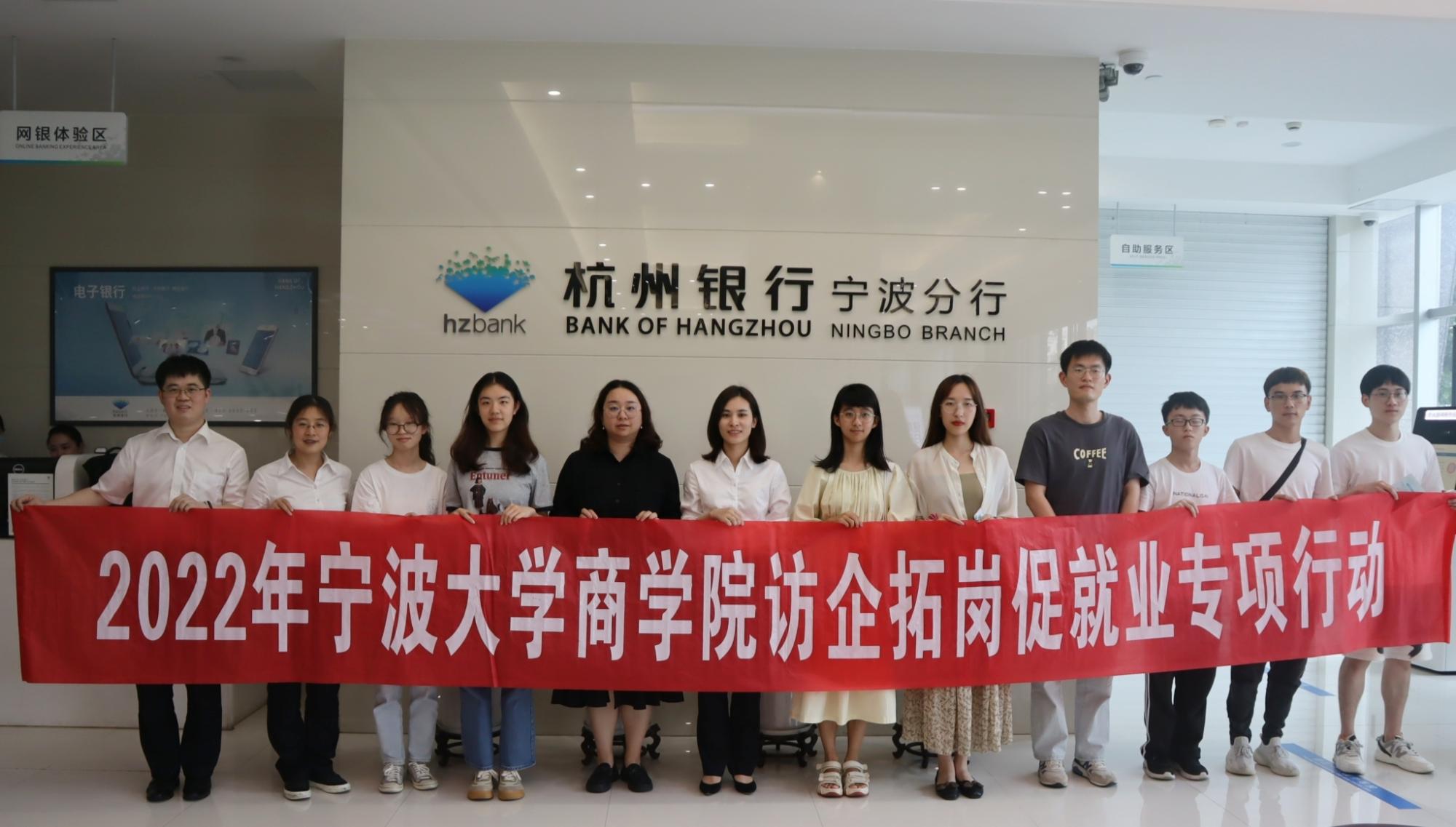 为积极响应教育部、省教育厅及学校的号召,国产av影片 持续推进访企拓岗促就业专项活动。本周,院长金祥荣、就业辅导员孙健维及学院学生代表走访杭州银行宁波分行,开启了国产av影片 访企拓岗第四站。杭州银行宁波分行人力资源部负责人徐芒芒、招聘主管潘陈晨、人力专岗胡静以及傅瑾、王业晗、黄佳慧三位学长学姐接待了我校来访,校企双方进行座谈交流。