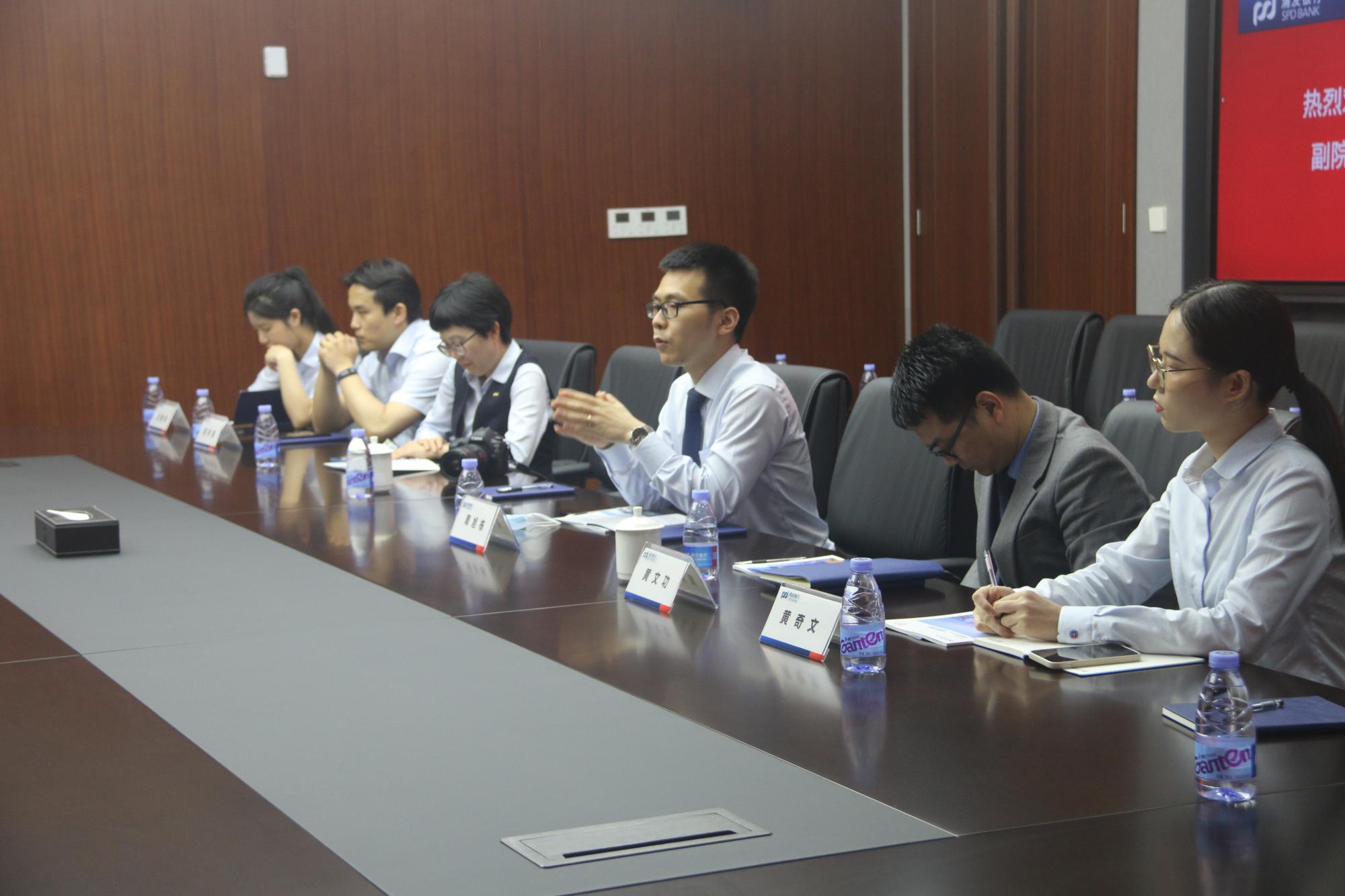 随后,副院长盛沛锋一行又来到浦发银行,浦发银行宁波分行团委书记周旭栋及宁大国产av影片 毕业的5位校友接待了我校来访。到达后,大家首先参观了浦发银行大楼的各个区域,对浦发银行工作环境进行了全面的了解。接着,校企双方进行了座谈交流。