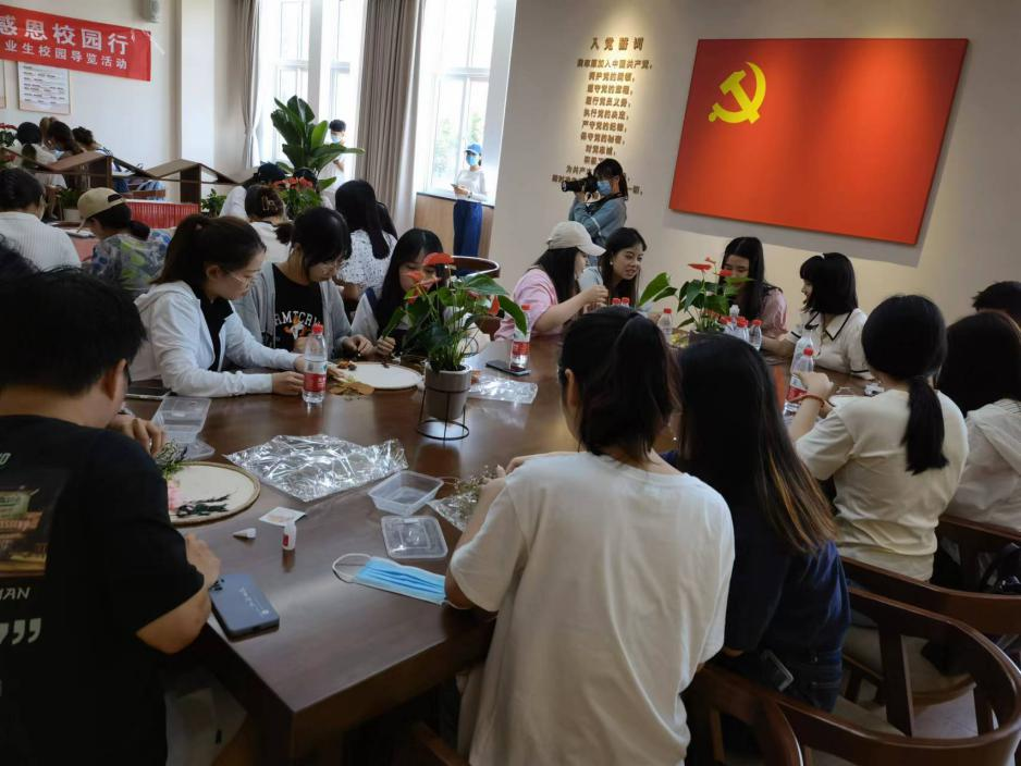 宣讲结束后,大家开始了手工干花挂饰的创作。通过手工制作的方式,每位毕业生在独具匠心的设计中表达了各自对母校的感恩之情。这些写着毕业生祝福的珍贵作品,也将是毕业生留给母校和学院最珍贵的礼物。